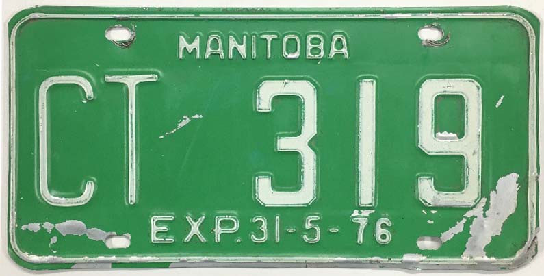 Click the button below to add the Manitoba Canada 1976 Commercial Truck Quarterly License Plate - CT319 to your wish list.