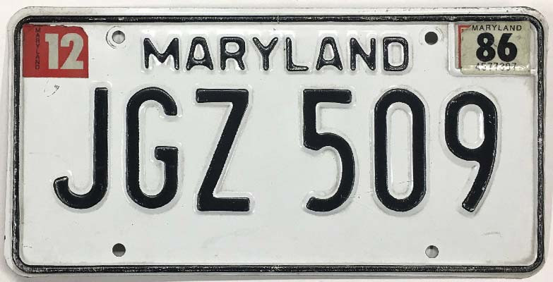Click the button below to add the Maryland 1986 License Plate - JGZ509 to your wish list.