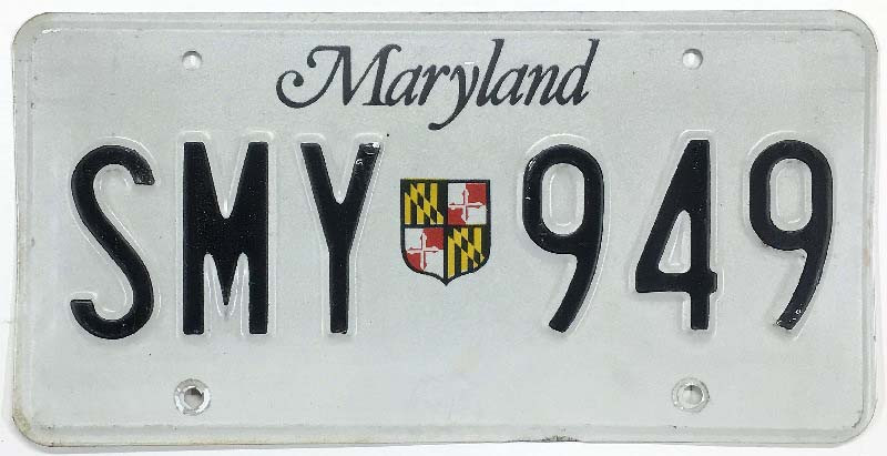 Click the button below to add the Maryland 1987-2005 "Shield" License Plate - SMY949 to your wish list.