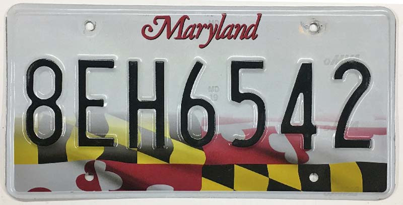 Click the button below to add the Maryland 2019 "State Flag" License Plate - 8EH6542 to your wish list.