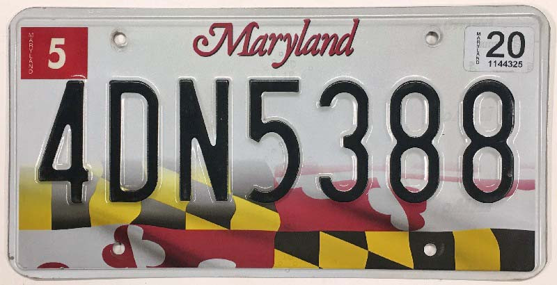 Click the button below to add the Maryland 2020 "State Flag" License Plate - 4DN5388 to your wish list.