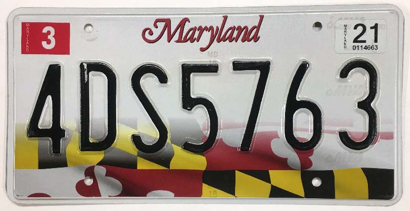 Click the button below to add the Maryland 2021 "State Flag" License Plate - 4DS5763 to your wish list.