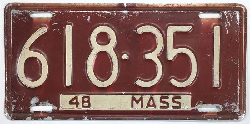 Click the button below to add the Massachusetts 1948 License Plate - 618351 to your wish list.