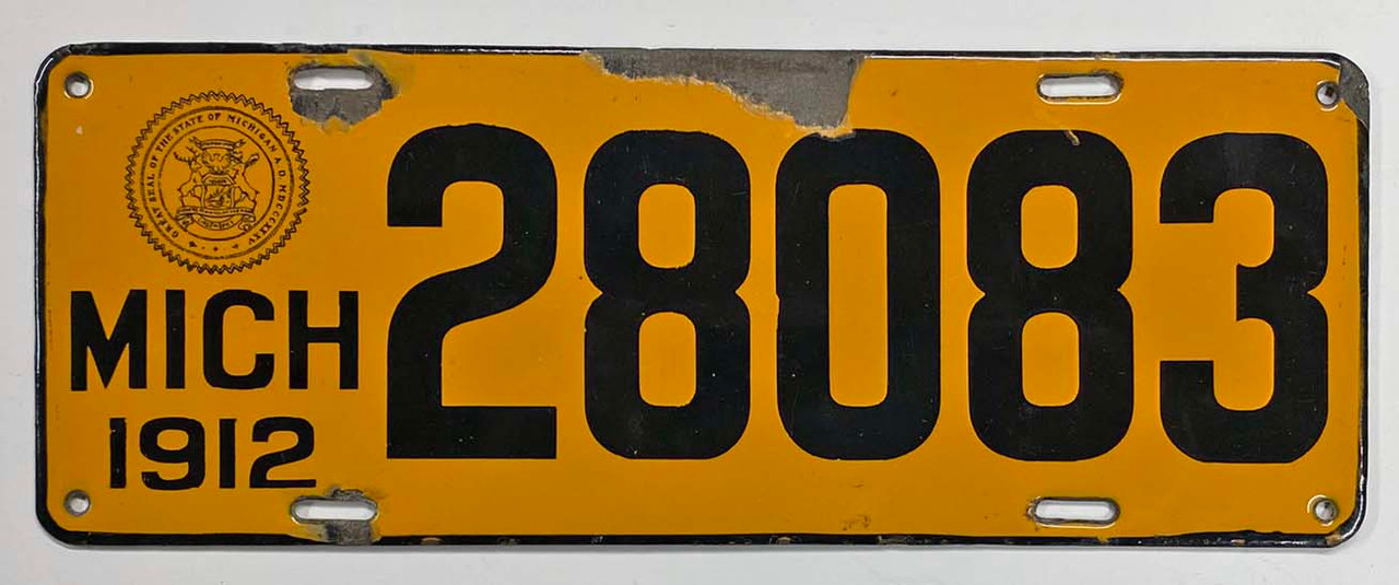 Click the button below to add the Michigan 1912 Porcelain License Plate - 28083 to your wish list.