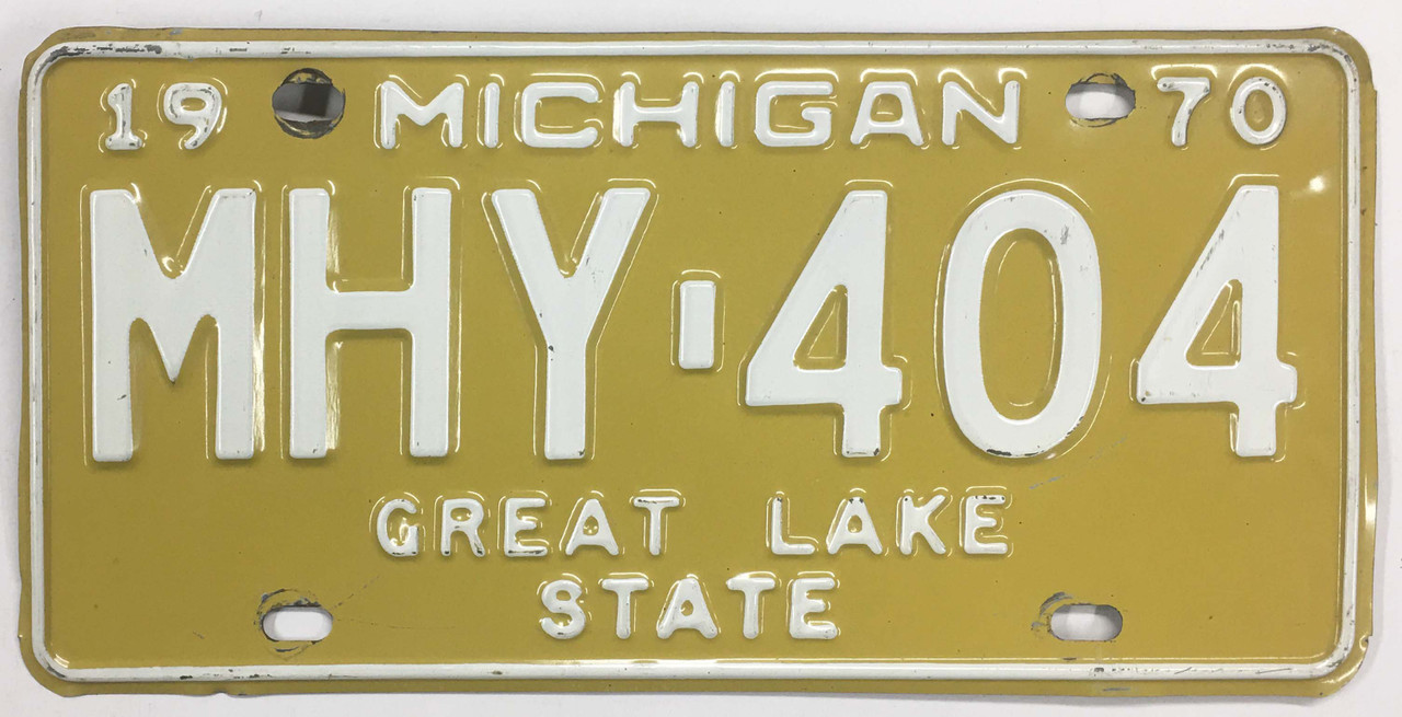 Click the button below to add the Michigan 1970 "Great Lakes State" License Plate - MHY404 to your wish list.