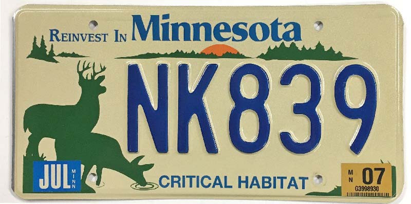 Click the button below to add the Minnesota 2007 Critical Habitat Deer License Plate - NK839 to your wish list.