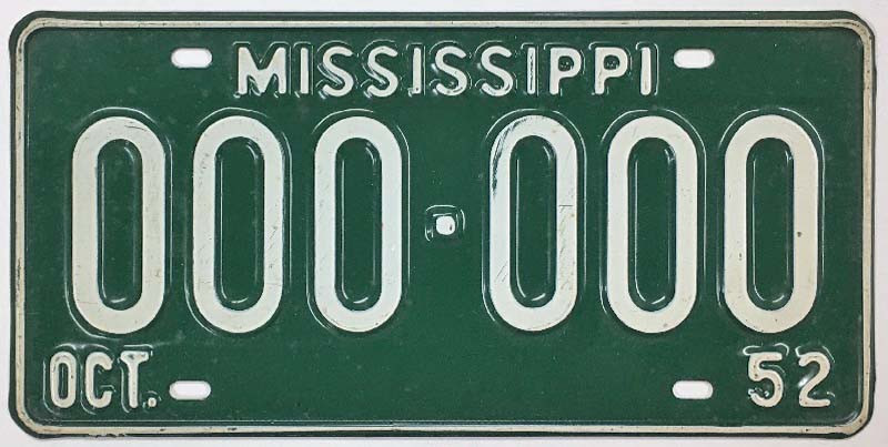 Click the button below to add the Mississippi 1952 Sample License Plate - 000000 to your wish list.