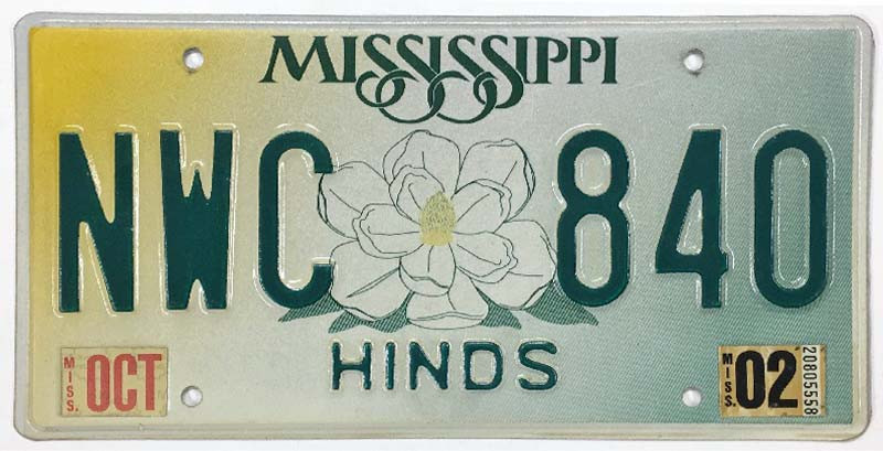 Click the button below to add the Mississippi 2002 "Big Magnolia" Hinds County License Plate - NWC840 to your wish list.