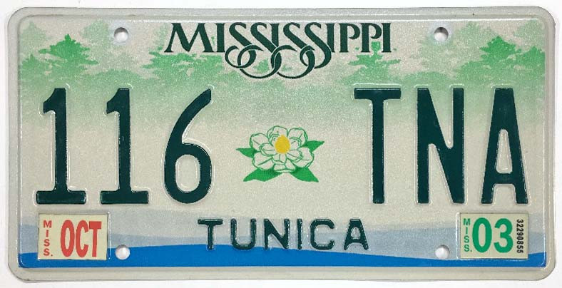 Click the button below to add the Mississippi 2003 "Small Magnolia" Tunica County License Plate - 116TNA to your wish list.