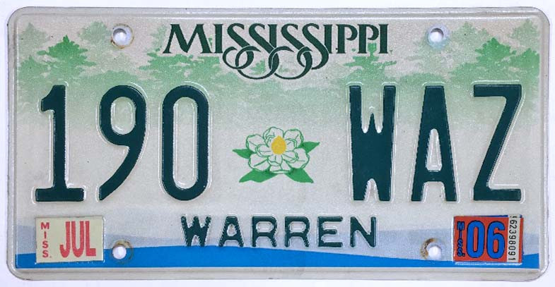 Click the button below to add the Mississippi 2006 "Small Magnolia" Warren County License Plate - 190WAZ to your wish list.