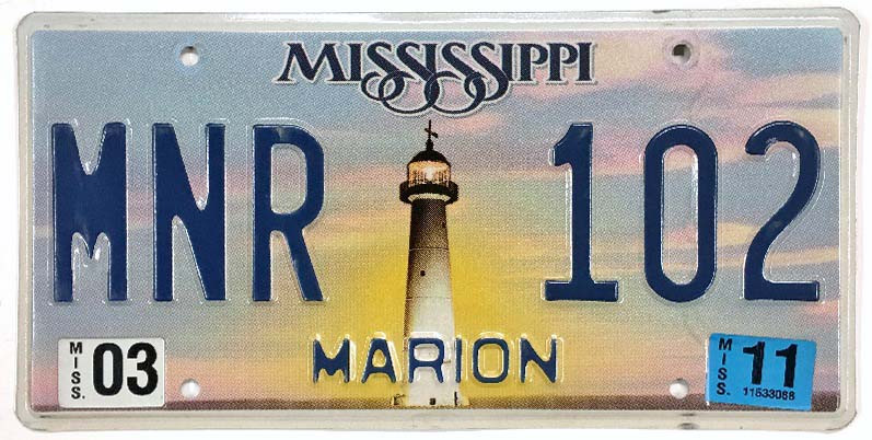 Click the button below to add the Mississippi 2011 "Biloxi Lighthouse" Marion County License Plate - MNR102 to your wish list.
