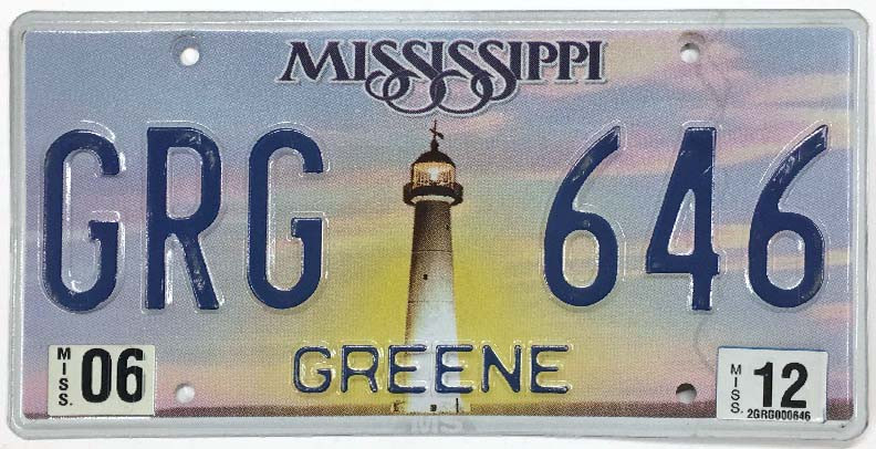 Click the button below to add the Mississippi 2012 "Biloxi Lighthouse" Greene County License Plate - GRG646 to your wish list.