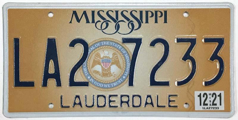 Click the button below to add the Mississippi 2021 "State Seal" In God We Trust Lauderdale County License Plate - LA27233 to your wish list.