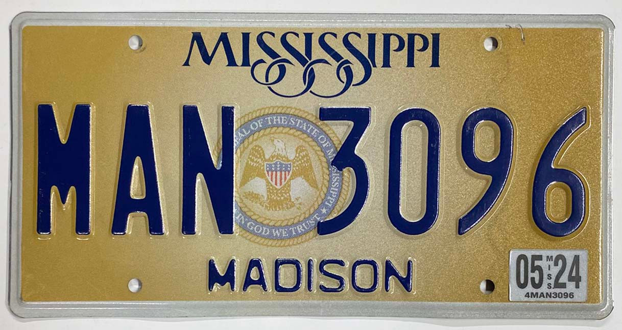 Click the button below to add the Mississippi 2024 "State Seal" In God We Trust Madison County License Plate - MAN3096 to your wish list.