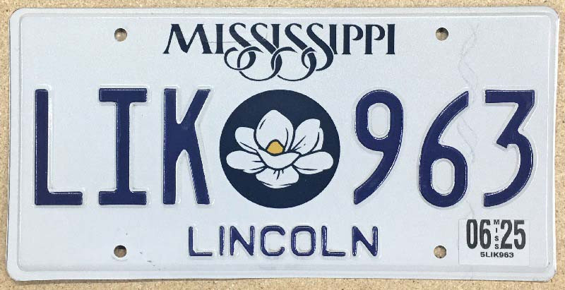 Click the button below to add the Mississippi 2025 "Magnolia" Lincoln County License Plate - LIK963 to your wish list.