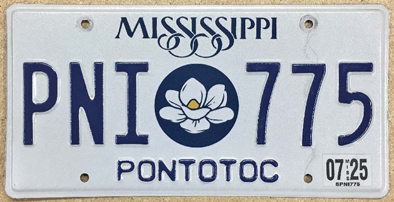 Click the button below to add the Mississippi 2025 "Magnolia" Pontotoc County License Plate - PNI775 to your wish list.