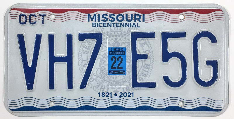 Click the button below to add the Missouri 2022 "State Bicentennial" License Plate - VH7E5G to your wish list.