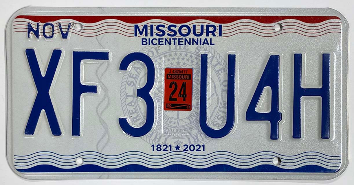 Click the button below to add the Missouri 2024 "State Bicentennial" License Plate - XF3U4H to your wish list.