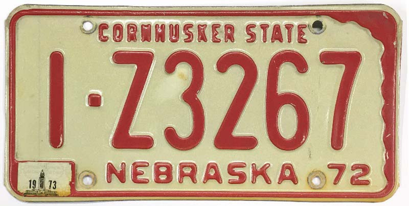 Click the button below to add the Nebraska 1972 1973 "Cornhusker State" Douglas County License Plate - 1Z3267 to your wish list.