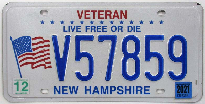 Click the button below to add the New Hampshire 2021 Military Veteran License Plate - V57859 to your wish list.