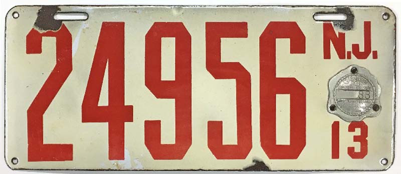 Click the button below to add the New Jersey 1913 Porcelain License Plate - 24956 to your wish list.