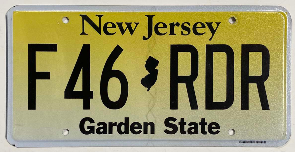 Click the button below to add the New Jersey 2022 "Yellow Fade" License Plate - F46RDR to your wish list.