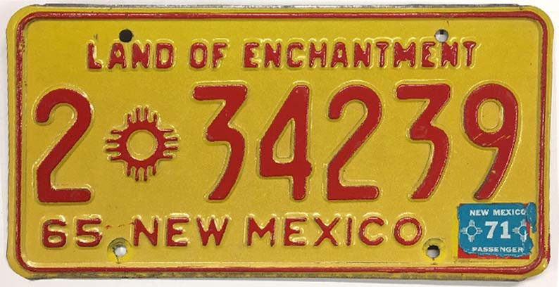Click the button below to add the New Mexico 1965 1971 "Land of Enchantment" Bernalillo County License Plate - 234239 to your wish list.