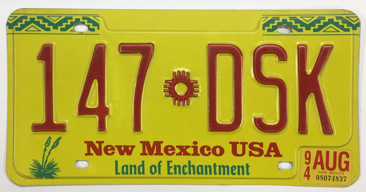 Click the button below to add the New Mexico 1994 "Land of Enchantment" License Plate - 147DSK to your wish list.