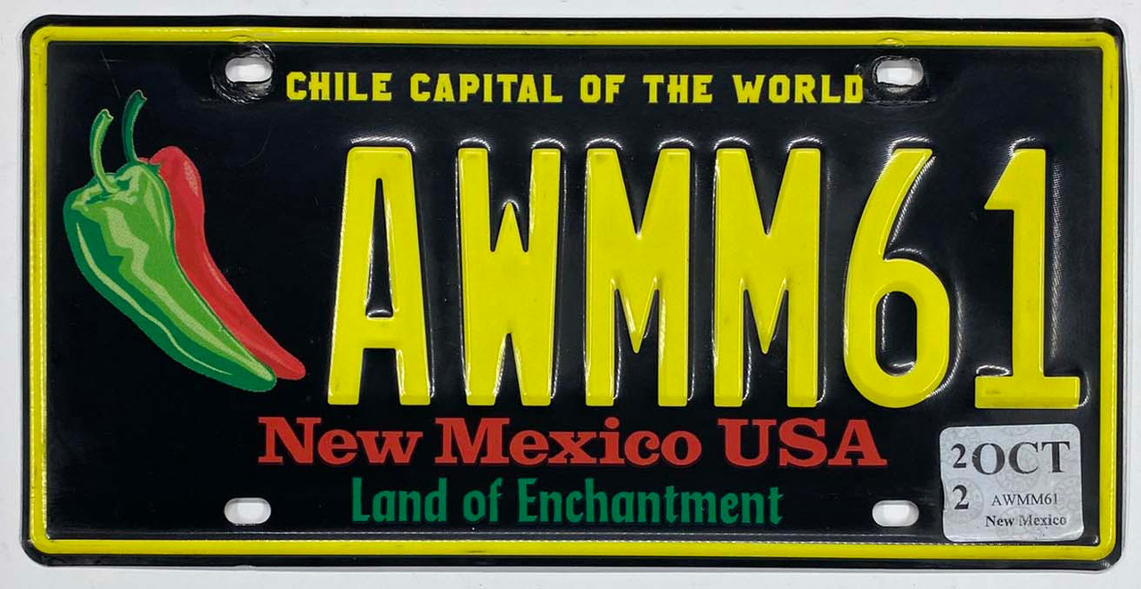 Click the button below to add the New Mexico 2022 "Chile Pepper Capital" License Plate - AWMM61 to your wish list.