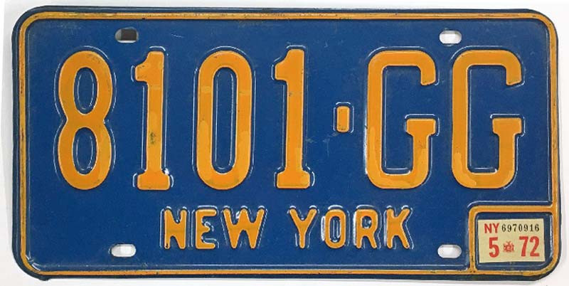 Click the button below to add the New York 1972 Monroe County License Plate - 8101GG to your wish list.