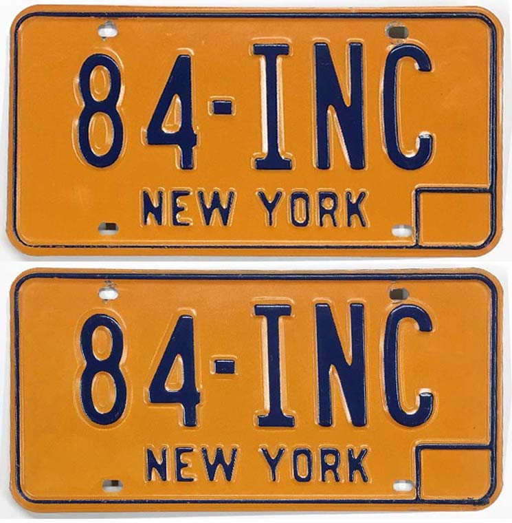 Click the button below to add the New York 1973-1986 License Plate Pair - 84INC to your wish list.