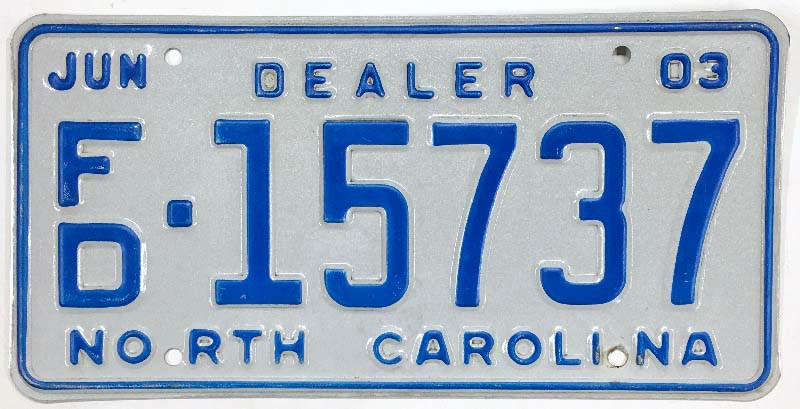 Click the button below to add the North Carolina 2003 Franchise Auto Dealer License Plate - FD15737 to your wish list.