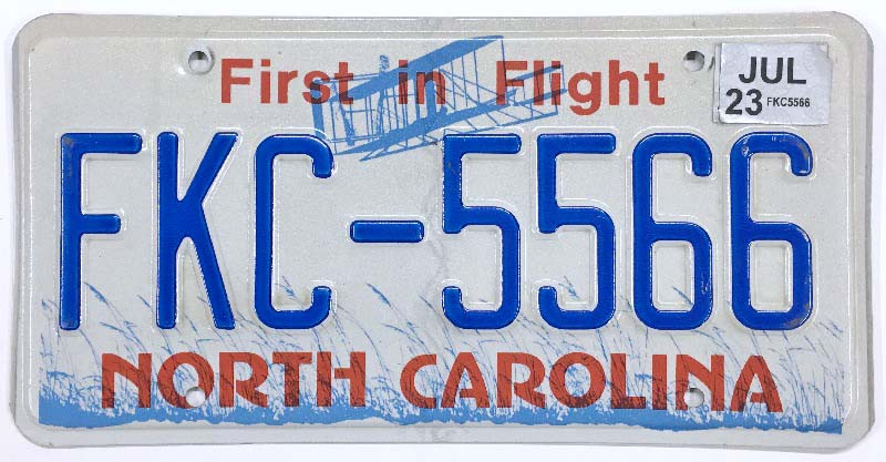 Click the button below to add the North Carolina 2023 "First in Flight" License Plate - FKC5566 to your wish list.