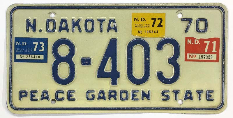 Click the button below to add the North Dakota 1970 1971 1972 1973 "Peace Garden State" License Plate - 8403 to your wish list.