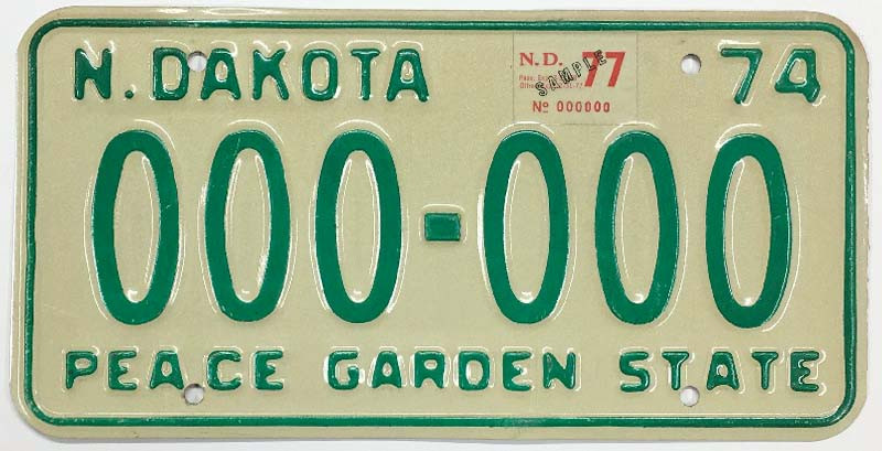 Click the button below to add the North Dakota 1974-1977 "Peace Garden State" Sample License Plate - 000000 to your wish list.