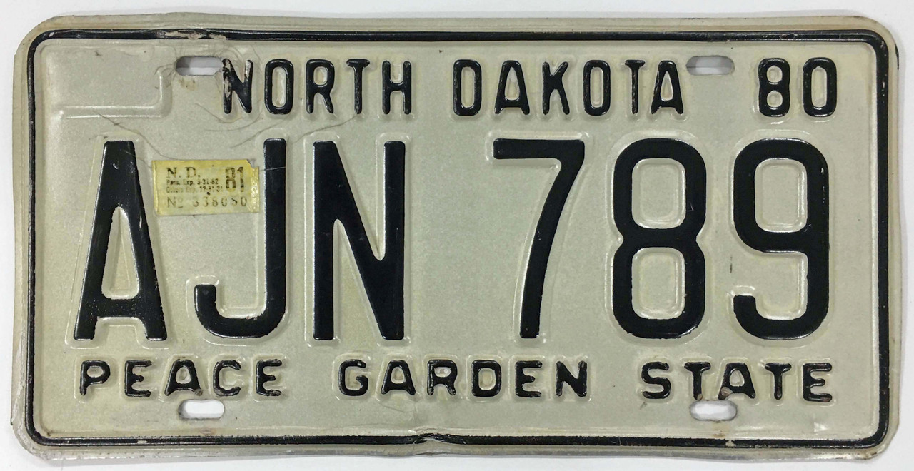 Click the button below to add the North Dakota 1980 1981 "Peace Garden State" License Plate - AJN789 to your wish list.