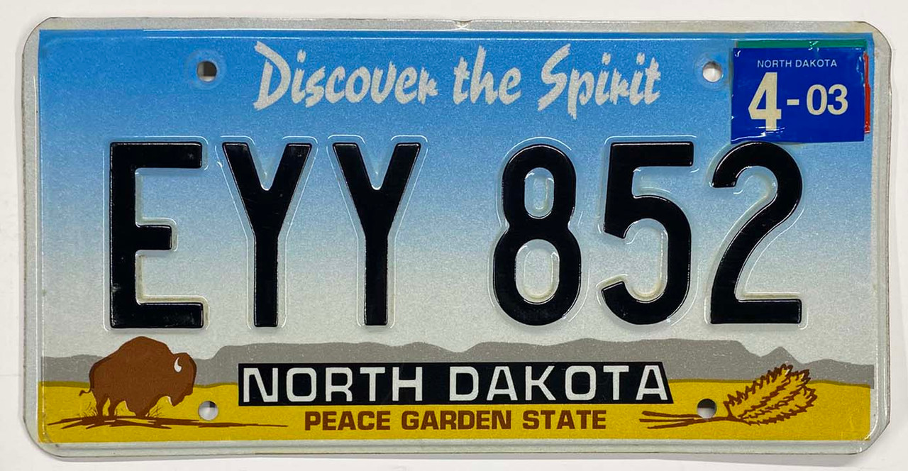 Click the button below to add the North Dakota 2003 "Bison Prairie Scene" License Plate - EYY852 to your wish list.