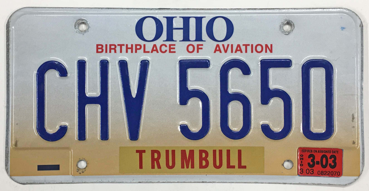 Click the button below to add the Ohio 2003 "Gold Fade" Trumbull County License Plate - CHV5650 to your wish list.