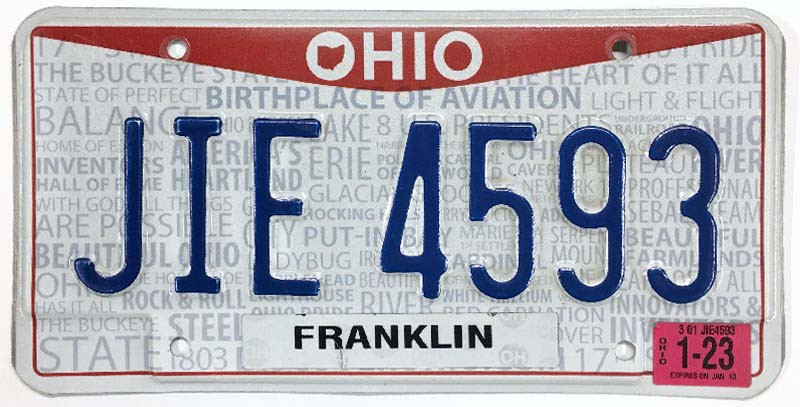 Click the button below to add the Ohio 2023 "Pride" Franklin County License Plate - JIE4593 to your wish list.