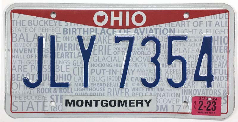 Click the button below to add the Ohio 2023 "Pride" Montgomery County License Plate - JLY7354 to your wish list.