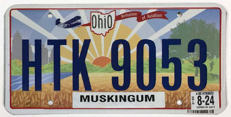 Click the button below to add the Ohio 2024 "Bi-Plane Sunrise" Muskingum County License Plate - HTK9053 to your wish list.