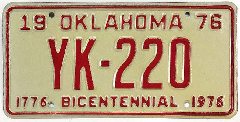 Click the button below to add the Oklahoma 1976 Bicentennial Oklahoma County License Plate - YK220 to your wish list.