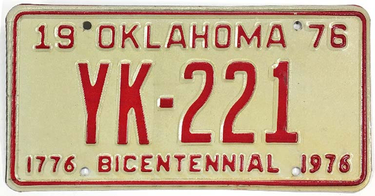 Click the button below to add the Oklahoma 1976 Bicentennial Oklahoma County License Plate - YK221 to your wish list.
