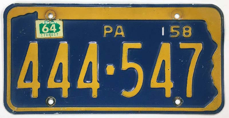 Click the button below to add the Pennsylvania 1958 1964 License Plate - 444547 to your wish list.