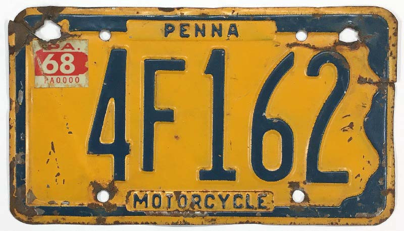 Click the button below to add the Pennsylvania 1968 Motorcycle License Plate - 4F162 to your wish list.