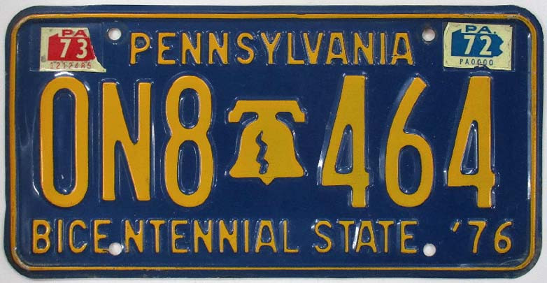 Click the button below to add the Pennsylvania 1972 1973 1976 Bicentennial License Plate - 0N8464 to your wish list.