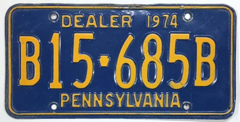 Click the button below to add the Pennsylvania 1974 Used Car Dealer License Plate - B15685B to your wish list.
