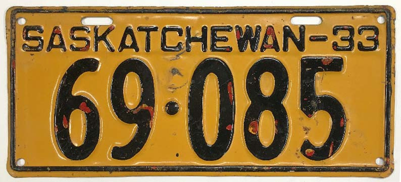 Click the button below to add the Saskatchewan Canada 1933 License Plate - 69085 to your wish list.