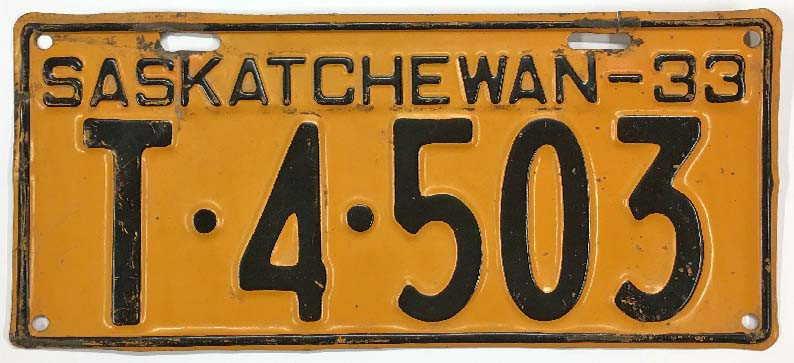 Click the button below to add the Saskatchewan Canada 1933 Truck License Plate - T4503 to your wish list.