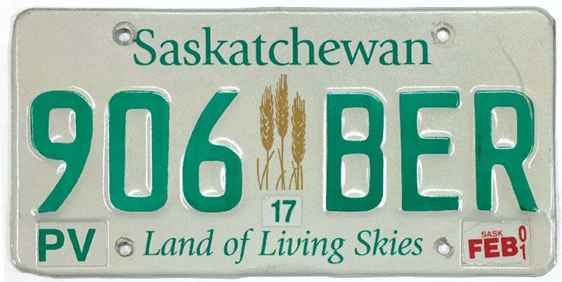 Click the button below to add the Saskatchewan Canada 2001 "Wheat Stalk" License Plate - 906BER to your wish list.